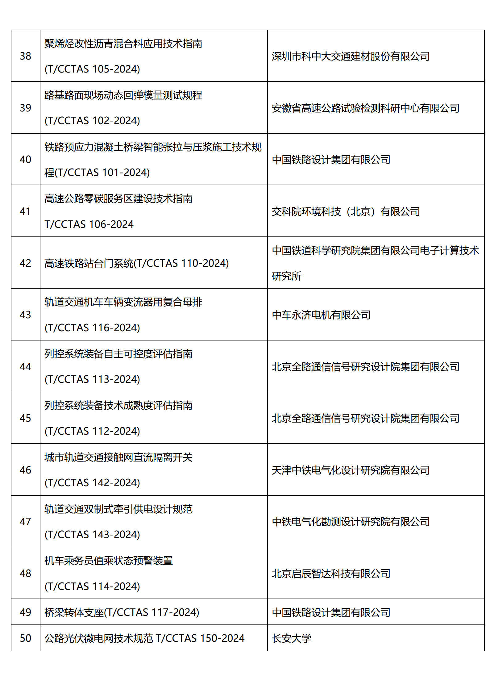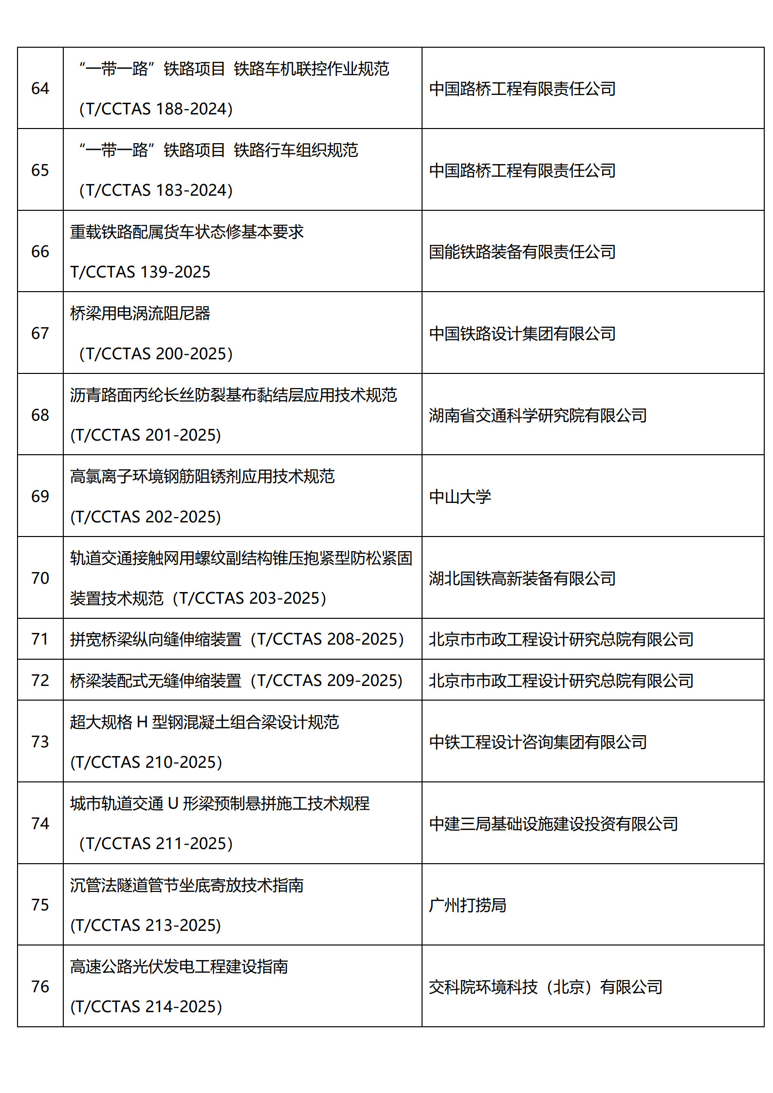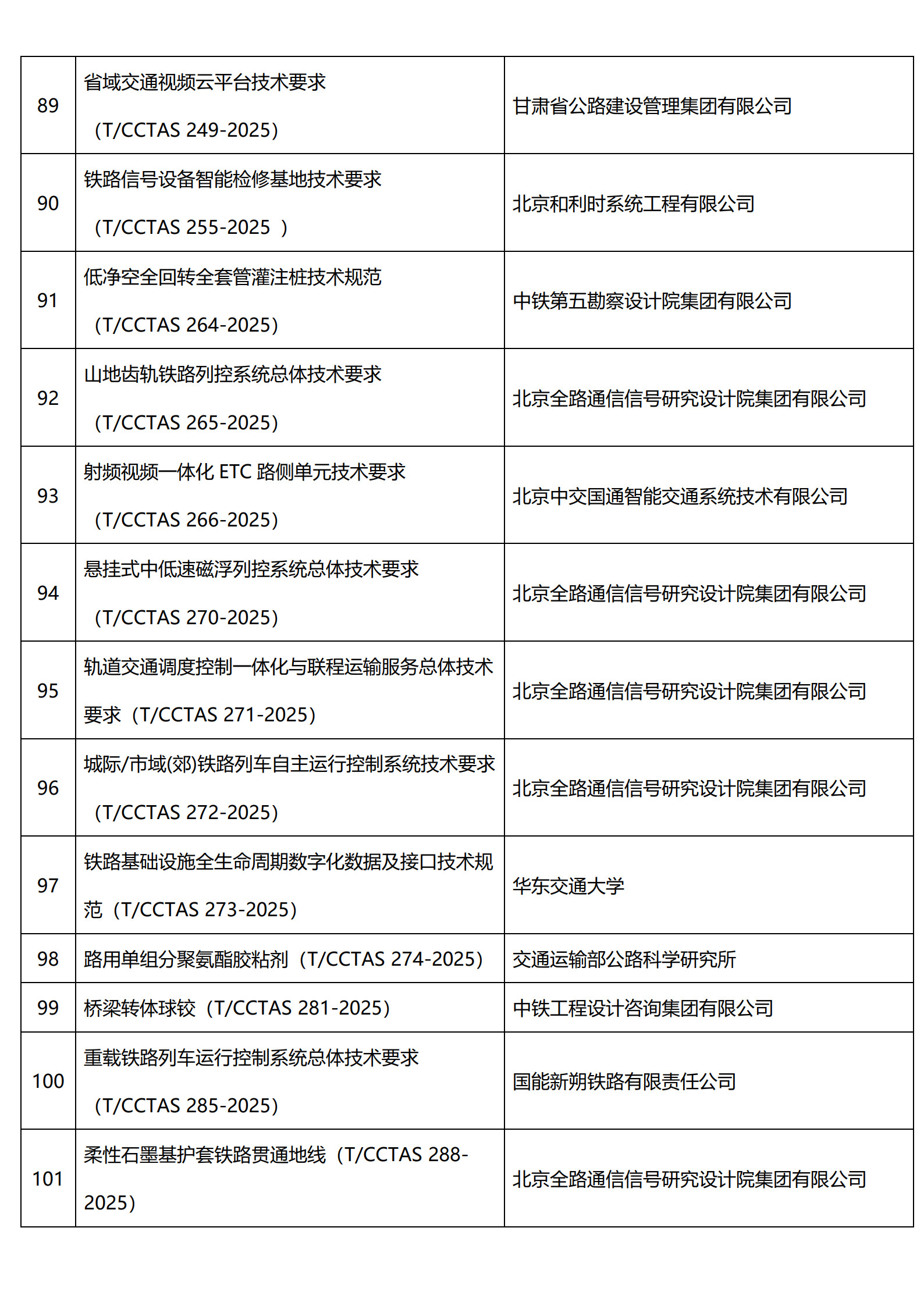 中国交通运输协会新技术促进分会已发布100项团体标准目录