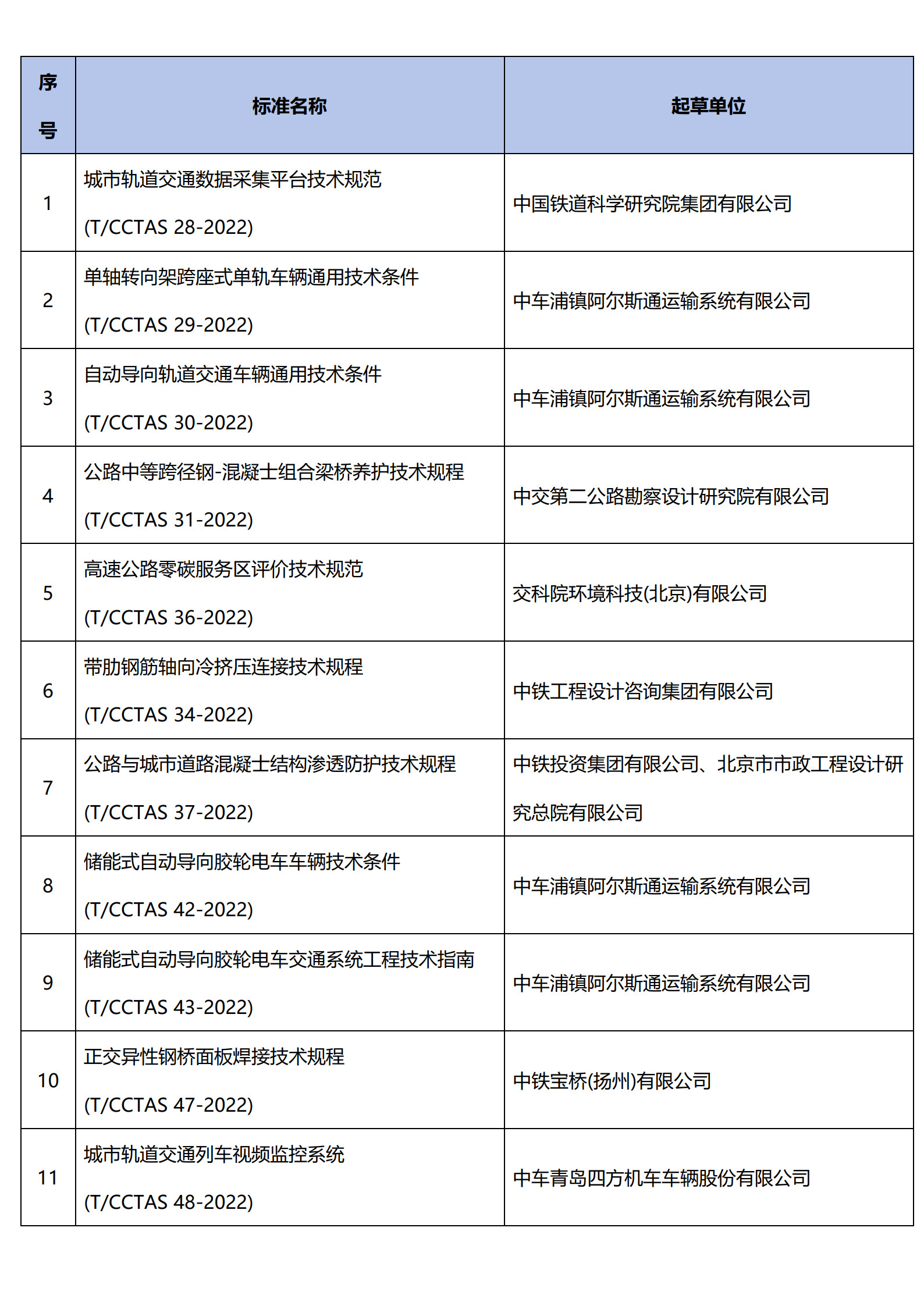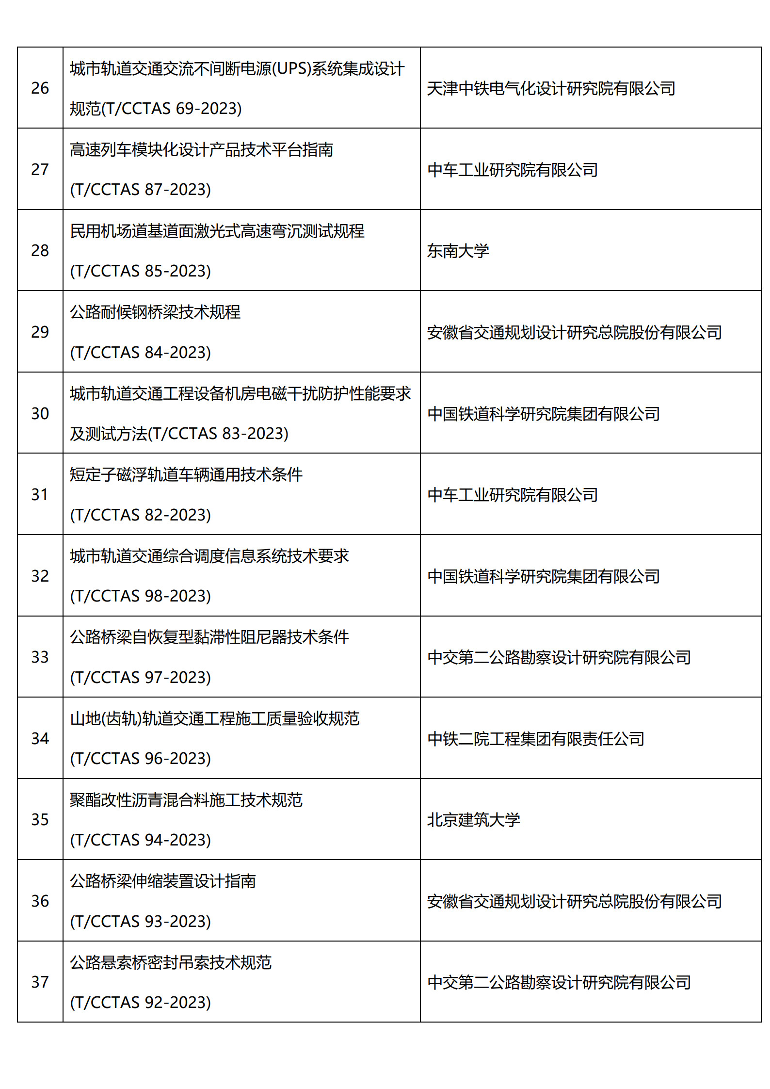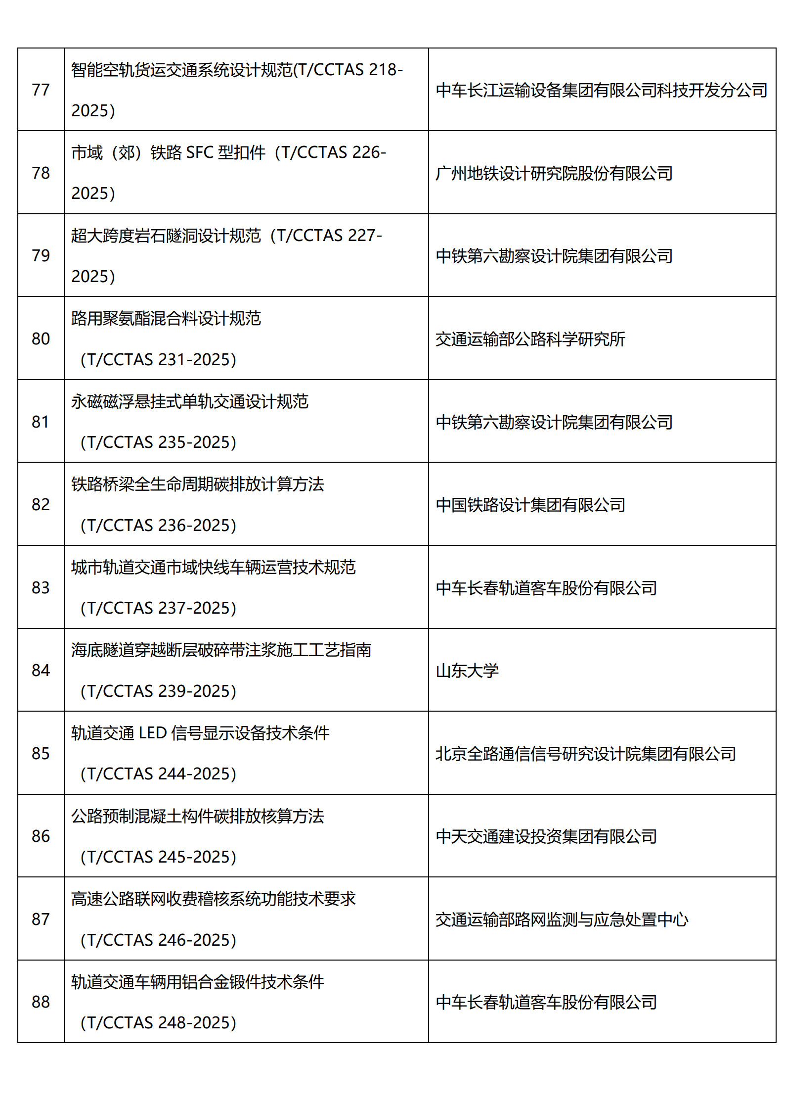中国交通运输协会新技术促进分会已发布100项团体标准目录